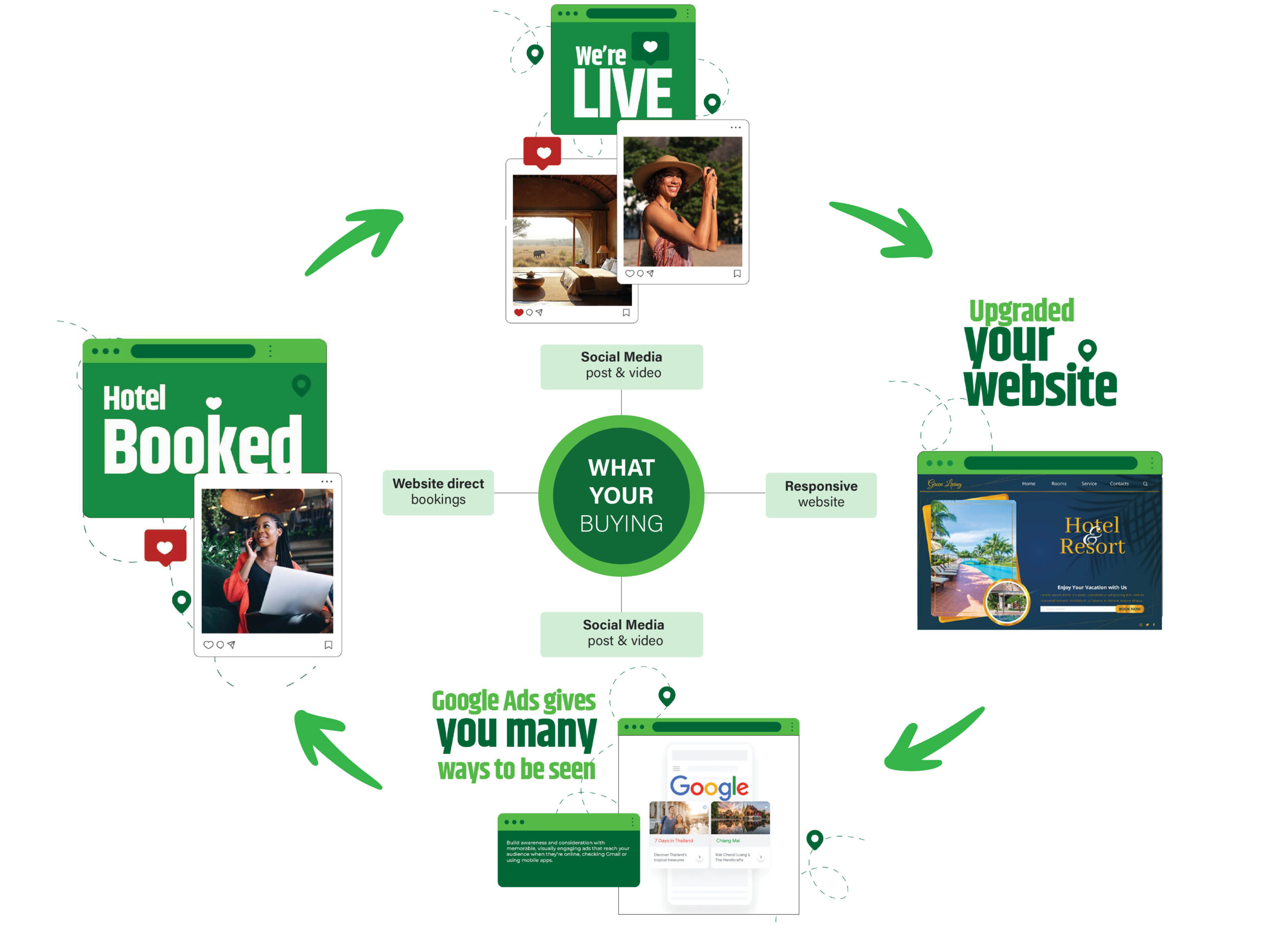 Continuous engagement on social media and your website builds trust, keeps your brand top-of-mind, improves visibility, and ultimately drive more leads and direct bookings.